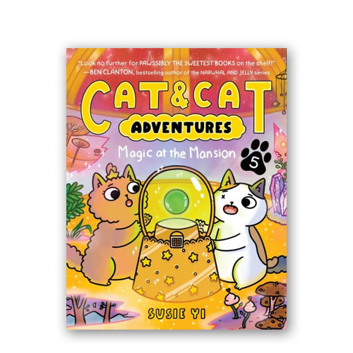 Follow the antics of Squash and Ginny in the fifth installment of Cat & Cat Adventures from popular webcomic creator Susie Yi! This chapter book graphic novel series from Susie Yi is perfect for fans of Catstronauts, Babymouse, and Catwad. The search is afoot! Squash and Ginny must locate the second orb of the Staff of Knowledge before the Spirit World leaks further into the Human World. Not only that, but their best friends Fern and Lotus are still missing! Thankfully, their wand tracks Fern, Lotus, and the orb to a mysterious mansion, where they’re shocked to discover all three are about to be auctioned off.