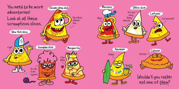 For fans of Supertato, this hilarious interactive book introduces children to a host of talking food characters, including a pizza slice that most certainly does NOT want to be eaten!