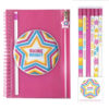 Pencils: Set of 6 pencils, #2, carded cello bagged. Pouch Journal: 82 lined pages, A5