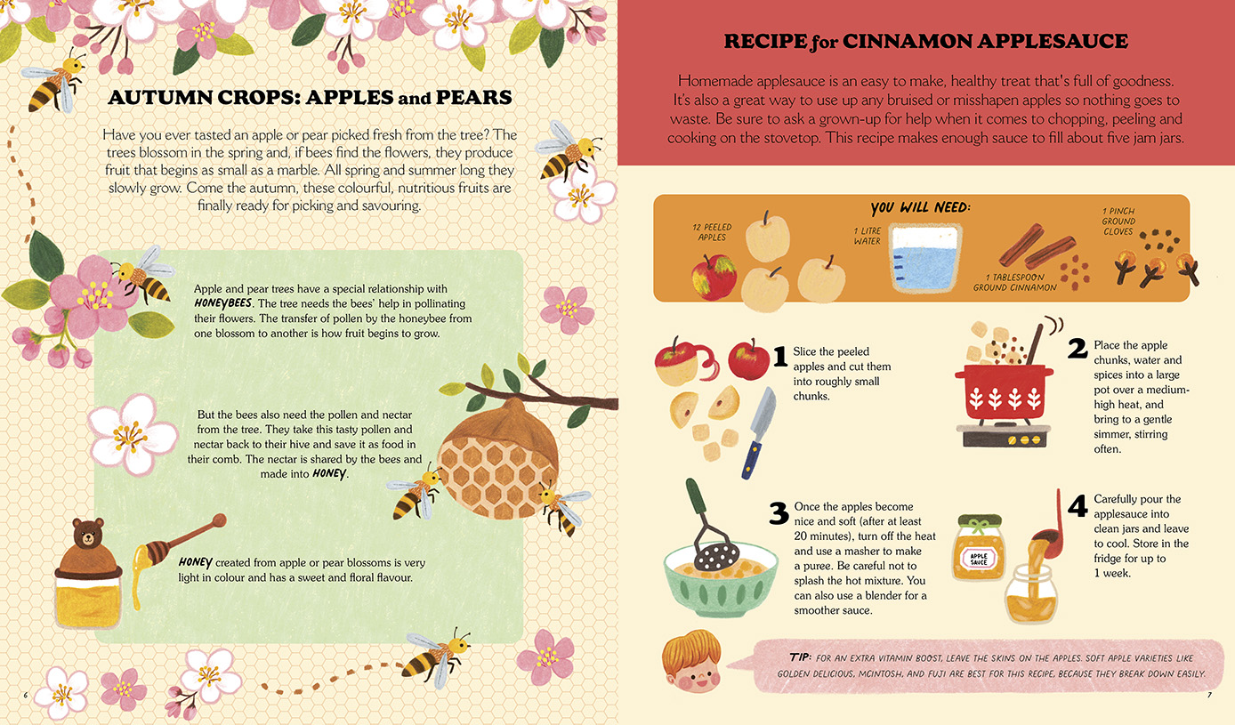 Suggestions for using up unloved parts of produce, such as ways to make use of apple cores and peel, demonstrate a naturally zero-waste way of living. Accessible and fun crafts, such as making a gratitude tree and a woven basket, have instructions broken down into clear steps illustrated in AnneliesDraws’ cute and wholesome style. The seasonal gardening and growing projects, such as planting herbs, can be done in a big back yard or on a windowsill, making this eco-friendly activity book a fun resource, whether readers are based in towns or the country.