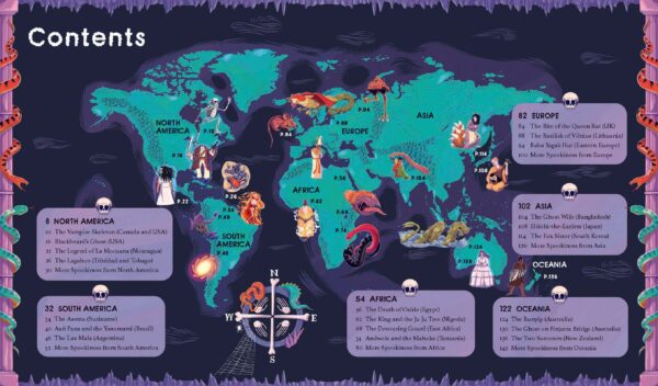 This spine-tingling collection of spooky stories features over 20 eerie tales from across the globe. Discover bewitching retellings of ghost- and monster-filled myths regaled with ghoulish relish and journey continent-by-continent through this haunting book. With shocks and twists like you wouldn’t believe – are you brave enough to read them all?Packed with mind-boggling mysteries, real unexplained enigmas and traditional stories that are sure to send shivers down your spine, Spooky Stories of the World is the ultimate feast for Halloween-loving kids and readers in search of a fright.