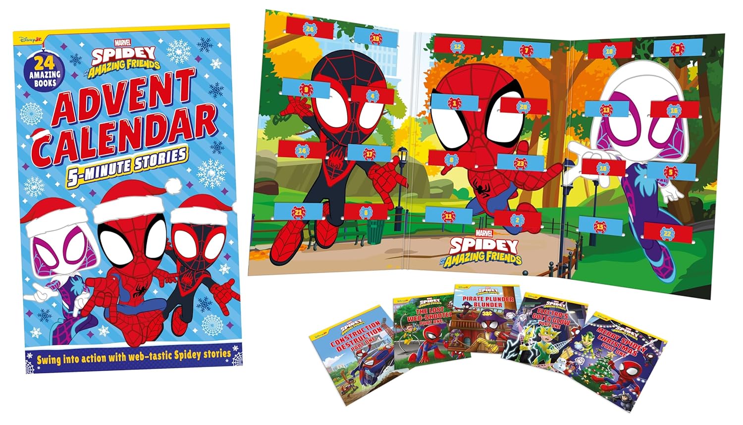 With a 5-minute story to enjoy every day in the lead up to Christmas, join Spidey, Spin and Ghost-Spider on their awesome adventures in this web-tastic 24-book Advent Calendar.