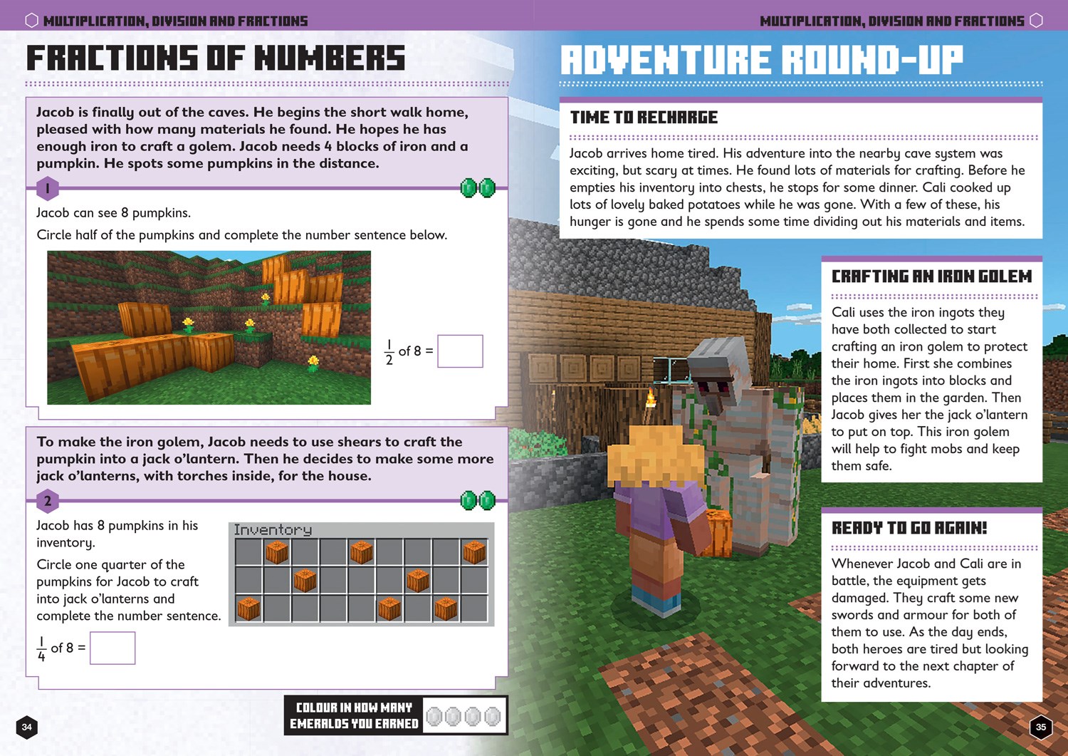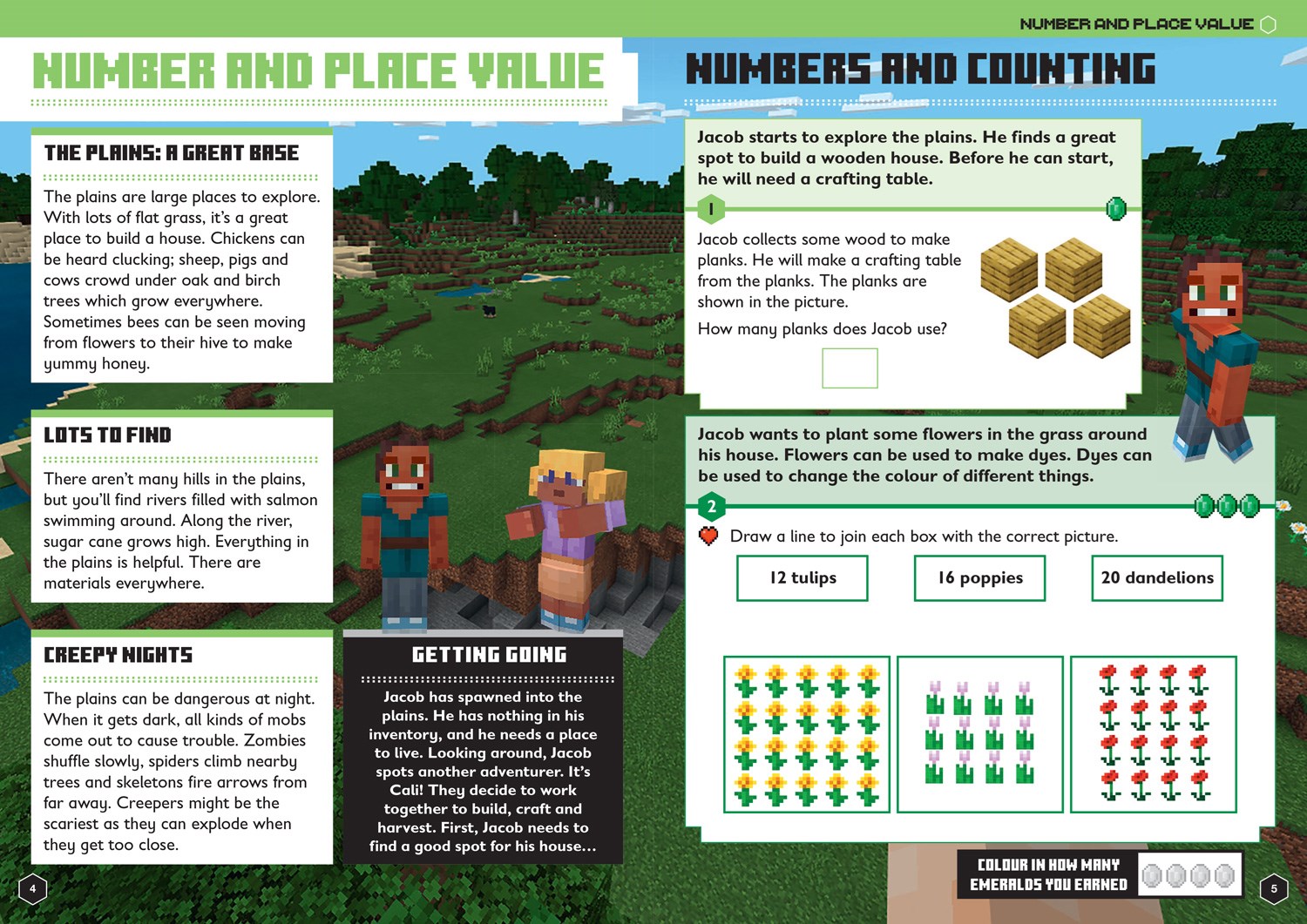 Accomplish maths activities to help Minecraft characters on their missions