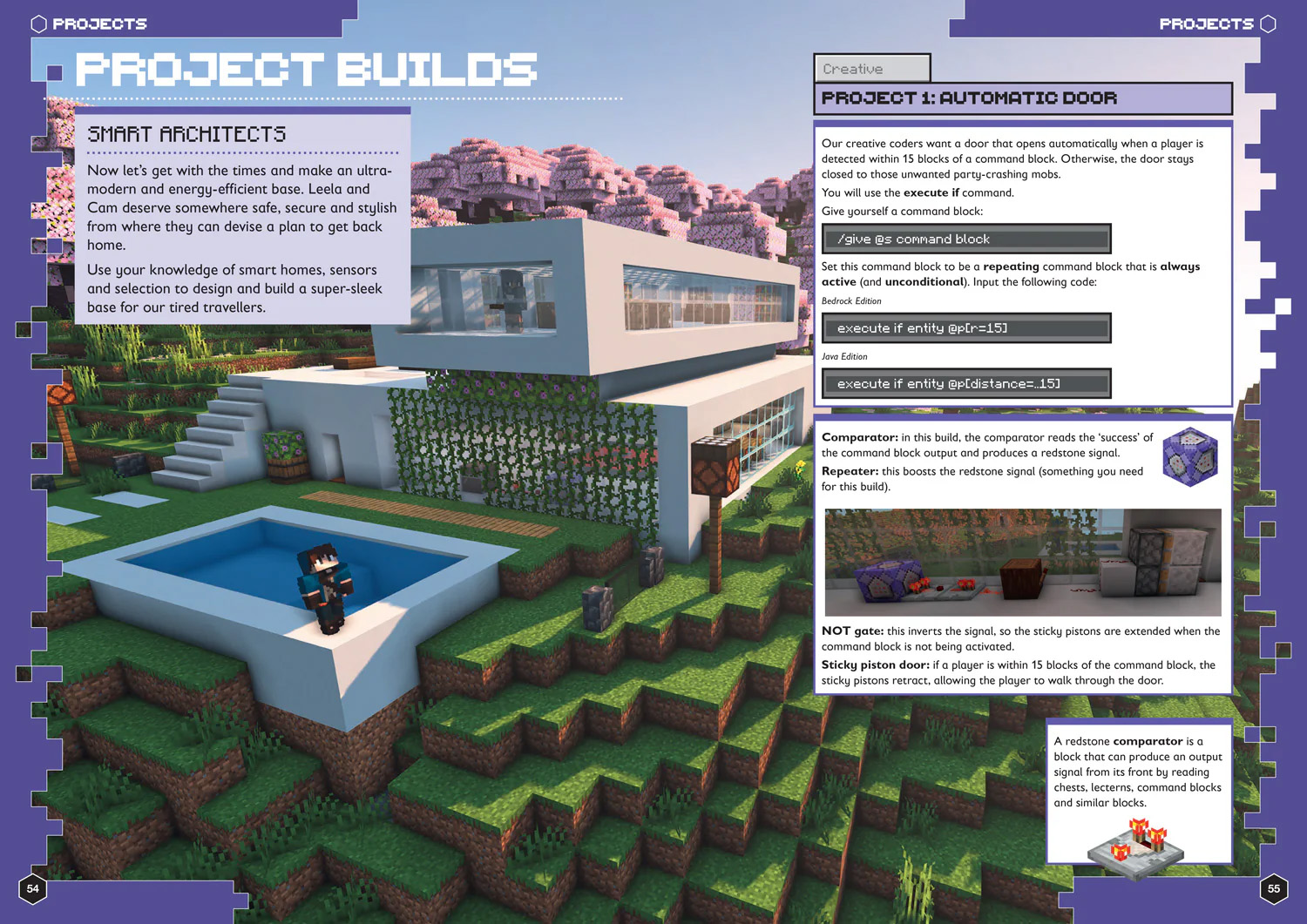Complete projects in Minecraft itself (compatible with all versions of the game), applying the skills and knowledge that has been learned in a hands-on project in each chapter.