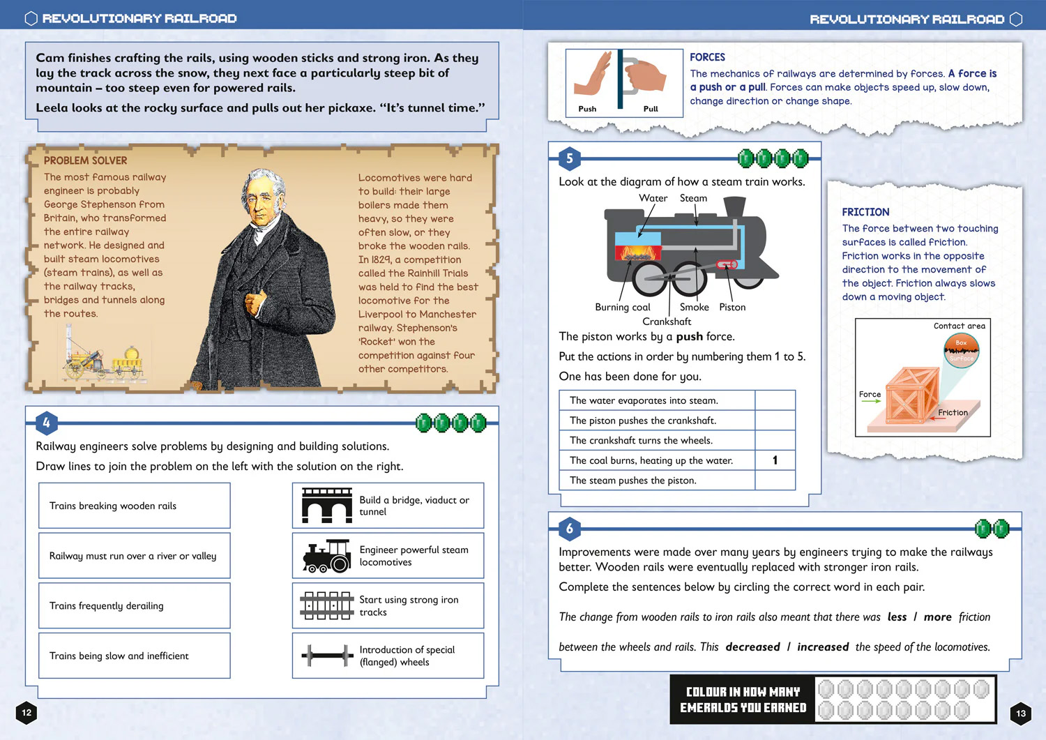 - Earn emeralds as they work through the book, and choose how they spend them