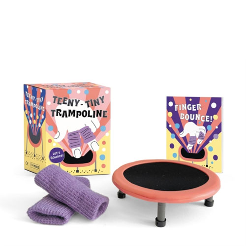 Slip the two “legwarmers” onto your fingers and hop onto the 2-7/8″ mini trampoline