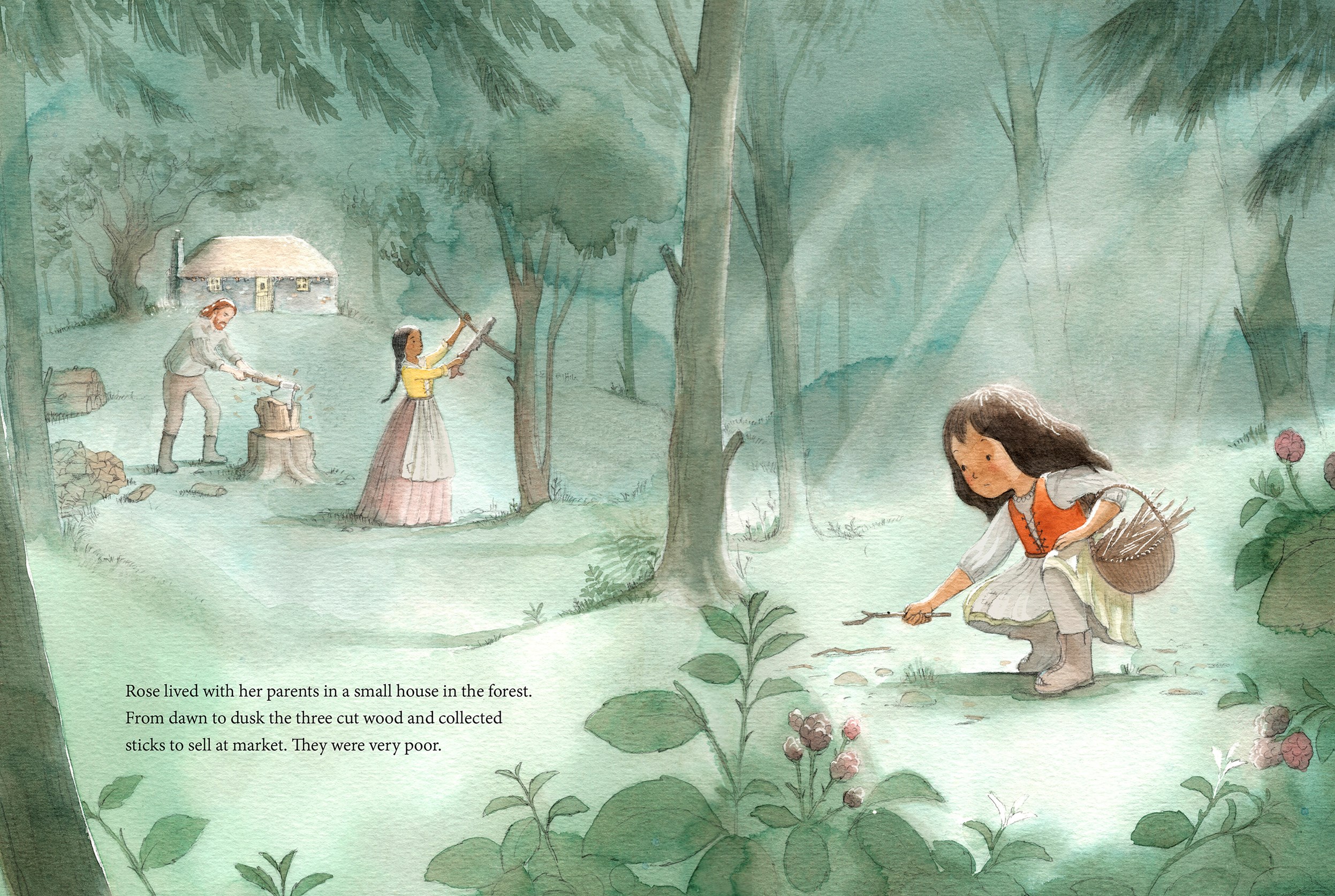 Rose lives with her parents in a small cottage in the forest. Her family are poor and hardworking, and Rose yearns for fun, friendship and flowers.