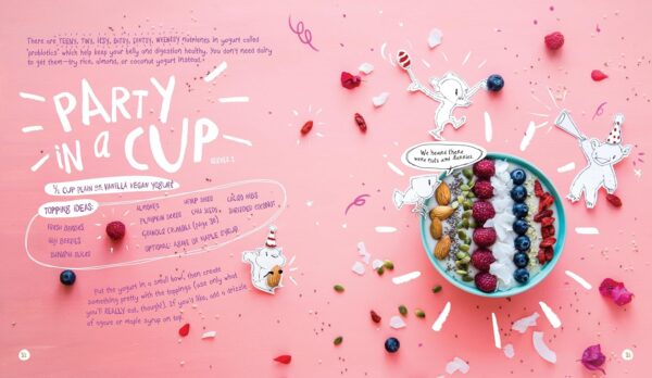 Recipes include: fun-to-munch hand-held snacks like Life Boats, bright fruit-flavored drinks like Tickled Pink, the always-popular things on toast like Leprechaun Tracks, salads they will actually eat like Tiger Stripes, cozy small meals like Tomato Tornado and sweets like chocolatey Disappearing Dots, because everybody likes candy!