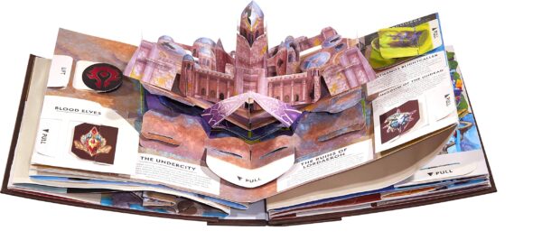 Choose your faction, pick your weapon, and prepare for an astonishing vision of the world of Azeroth like you’ve never seen before! Built by best-selling paper engineer Matthew Reinhardt, the World of Warcraft Pop-Up Book brings the most well-loved locations of Warcraft to life, from the classic faction hubs of Ogrimmar and Stormwind, to the battle-scarred lands of Lordaeron and Teldrassil, and even the new capital cities of Kul Tiras and Zandalar! Each page unfolds into an eye-popping treat, depicting iconic locations with brand new art and interactive pieces that you’ve never seen before. Unfold each individual spread to form a map of Azeroth!