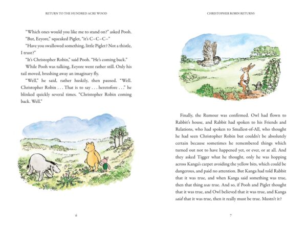 From the excitement of Christopher Robin’s return, to the curious business of learning to play cricket, Return to the Hundred Acre Wood features all the old friends we know and love – from Pooh to Piglet, Eeyore to Owl and Tigger to Rabbit.
